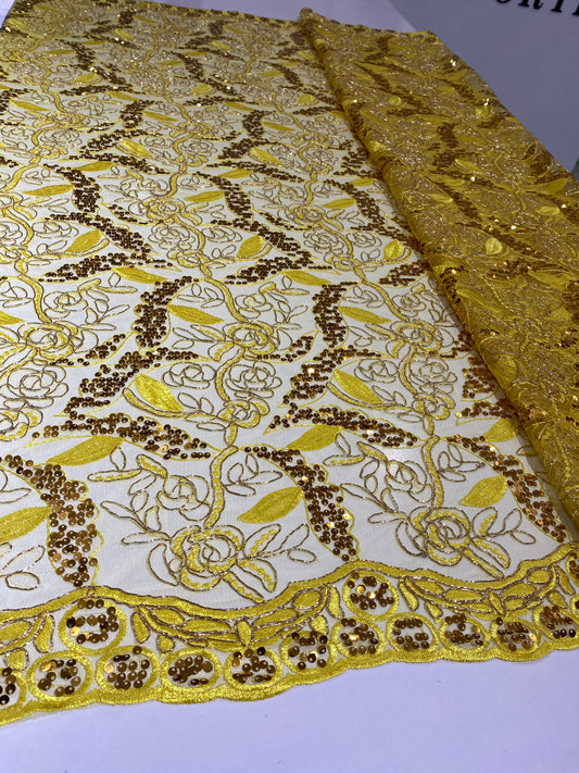 Yellow Embroidery Sequins Lace