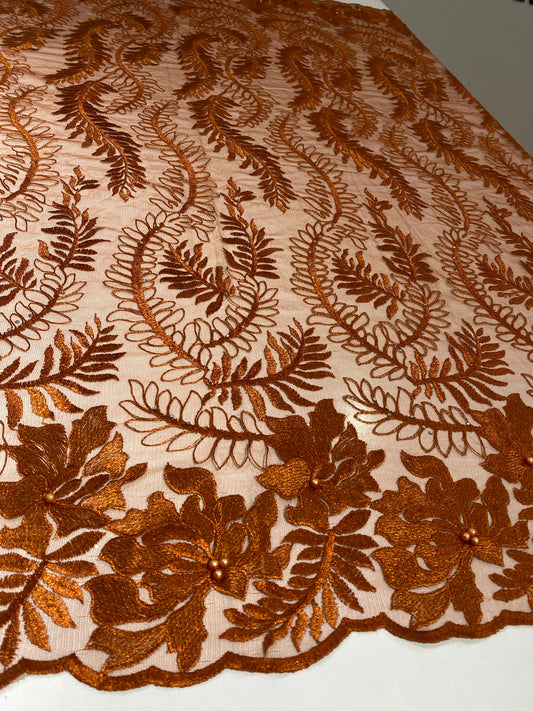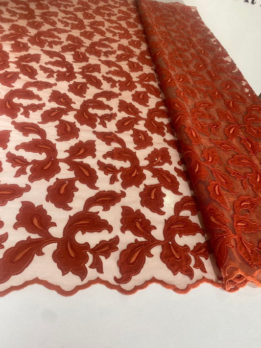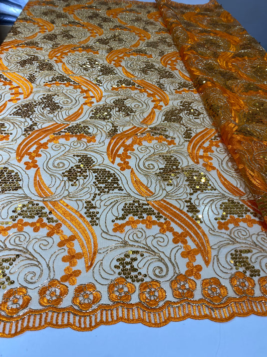 Sold outOrange Embroidery Sequins Lace