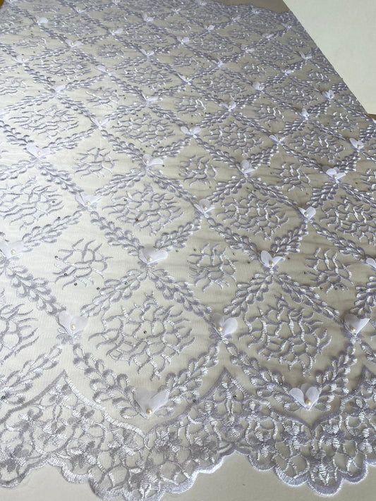 Pure White Embroidery Lace With Sequins
