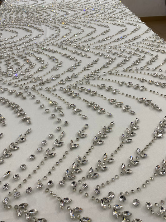 High-quality lace with exclusive designs embellished with gemstones and crystal beads is available in four-yard lengths.