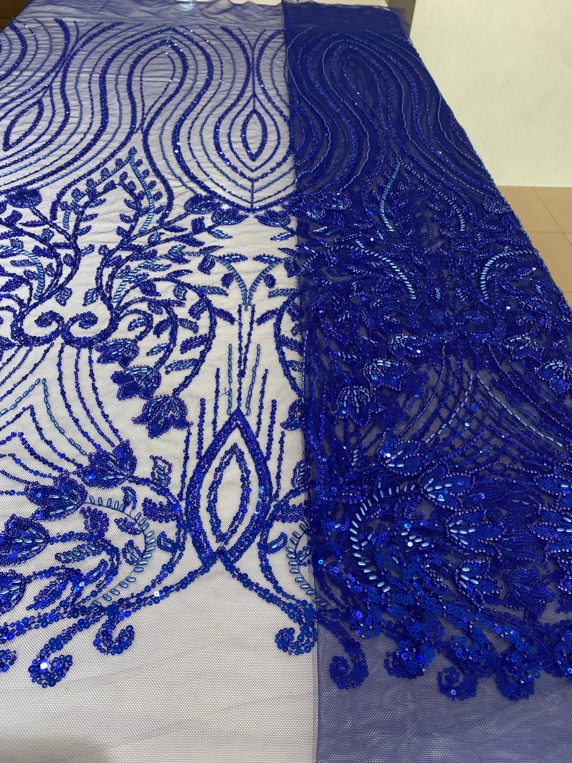 Royal Blue Beaded Lace